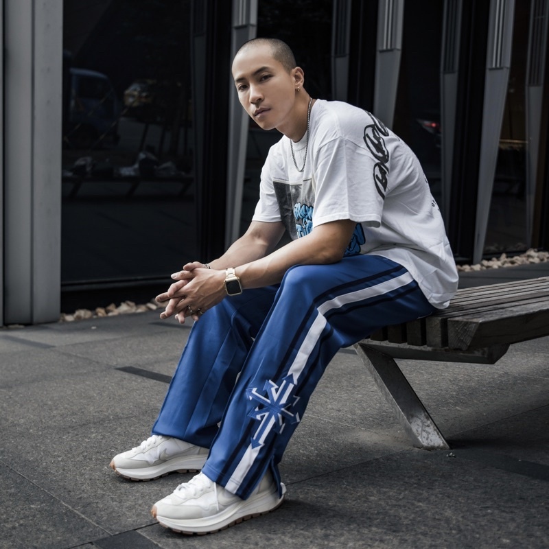 褲腳加上具歐美街頭風格的大logo刺繡
